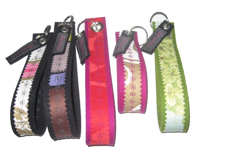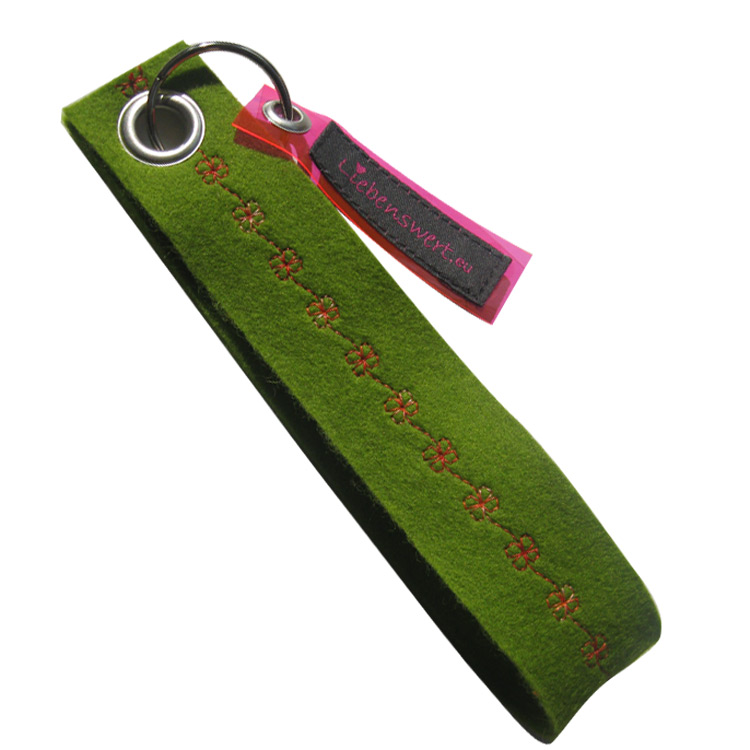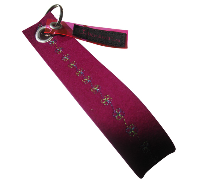 Jeder Schlüsselanhänger ist ein absolutes Unikat, da sie aus Designerfilz bestehen und mit den unterschiedlichsten hochwertigen Stoffen /Leder und Mustern bestickt sind. Es gibt eine unendliche Vielzahl an Farbvarianten.